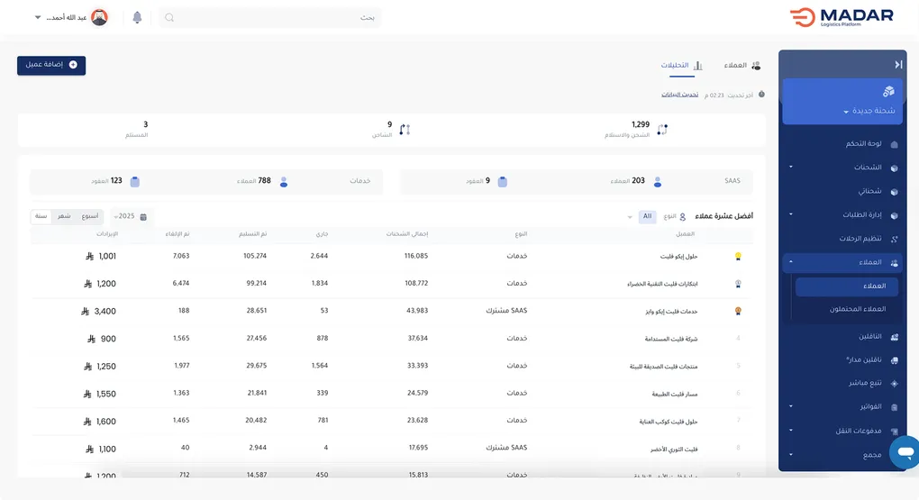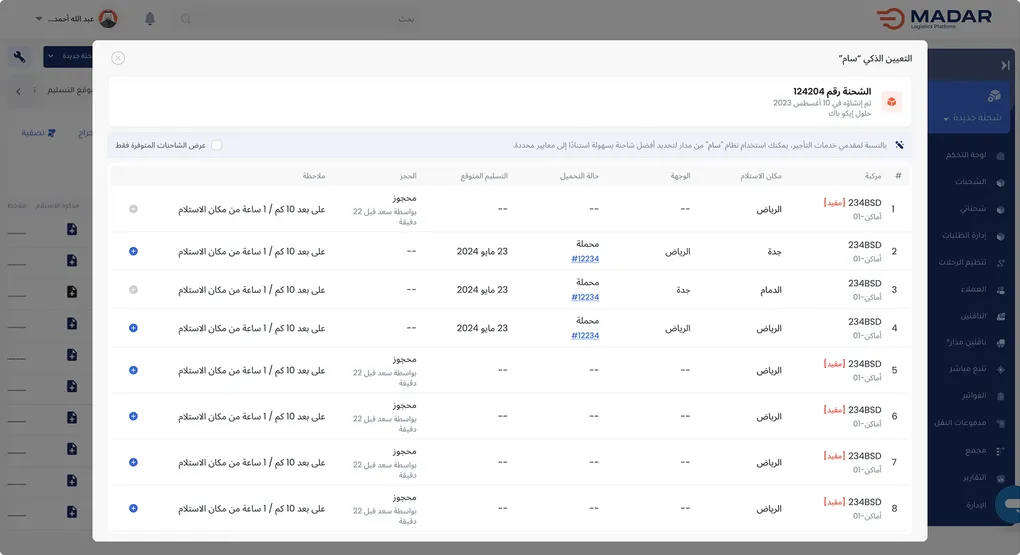 مع مدار، يمكنك الوصول إلى شبكة أوسع من العملاء، وتحليل اتجاهات الطلب حسب نوع الحمولة والوجهات، مما يعزّز كفاءتك ويزيد فرص النمو.
