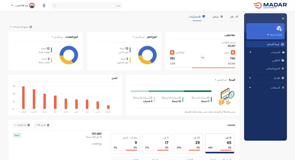 حقق أقصى استفادة من كل رحلة. مدار تتيح لك تنفيذ شحنات أكثر باستخدام موارد أقل، لزيادة أرباحك بكل كفاءة.