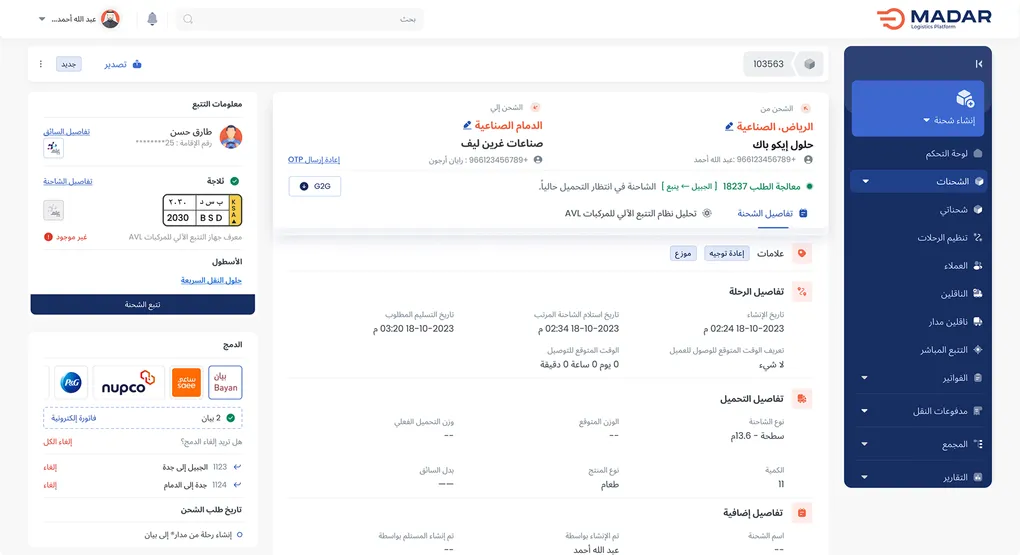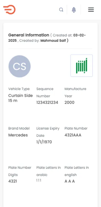 تأكد من جاهزية المركبات للعمل عبر منصة مدار التي تتحقق من صلاحية رخص العمل وضمان أن كل مركبة تحمل رخصة سارية للعمل في سوق اللوجستيات. كما يتم ربط كل شاحنة بالسائق المعيّن لها لضمان متابعة دقيقة وسلسة لجميع العمليات.