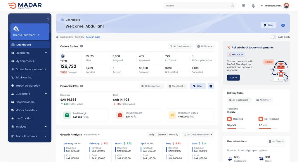 Save money and time on daily operations. Assigning a shipment to a driver takes seconds with Madar. Monitor your fleet in real-time — quickly identify available and occupied drivers. Simplify and automate everyday routines like organizing acceptance.